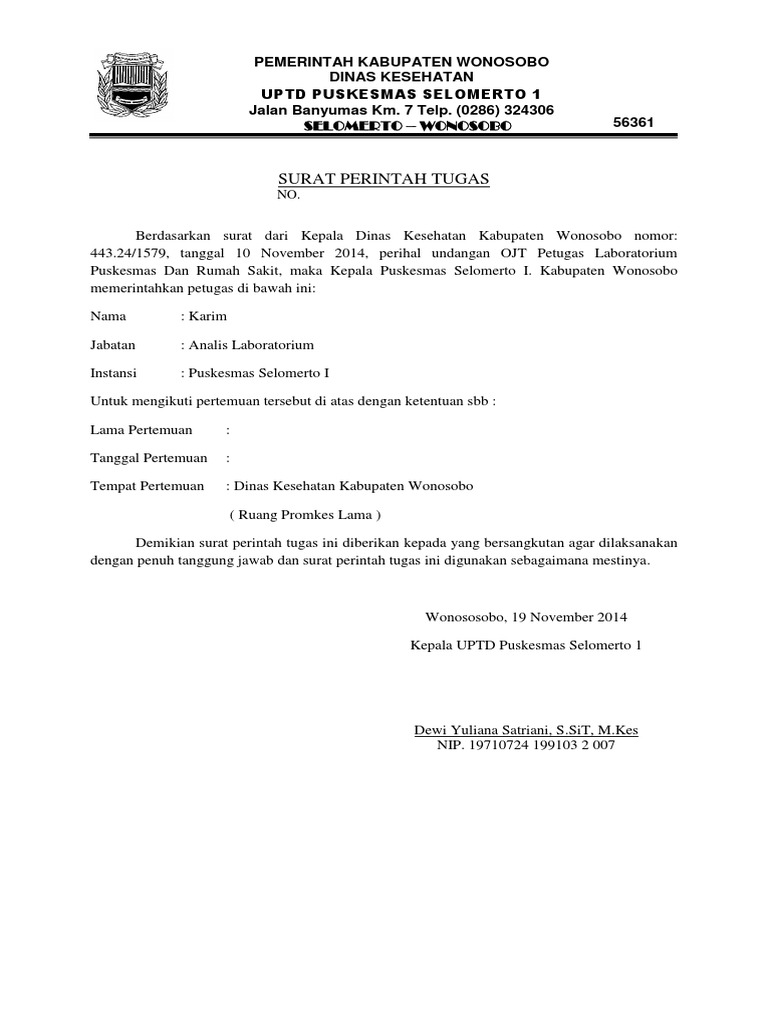 Zainul azhari pk.pt ipnu unisla tertib administrasi, modal kemajuan organisasi. Pengertian surat tugas adalah surat resmi yang dibuat dan dikeluarkan oleh seorang pejabat yang berwenang di instansi atau lembaga tertentu dimana isinya menugaskan seorang pegawai/ staff untuk. Di bawah ini bisa anda lihat sendiri bahwa jabatan yang diemban oleh orang yang diberi tugas adalah kepala. Contoh surat tugas menjadi salah satu jenis surat resmi walaupun dalam pemakaian bersifat surat tugas adalah surat yang dibuat oleh instansi atau perusahaan untuk memberikan suatu tugas. Pengertian surat tugas adalah surat resmi yang dibuat dan dikeluarkan oleh seorang pejabat yang setelah pekerjaan tersebut berakhir atau terselesaikan maka surat tugas tidak dapat berlaku lagi.